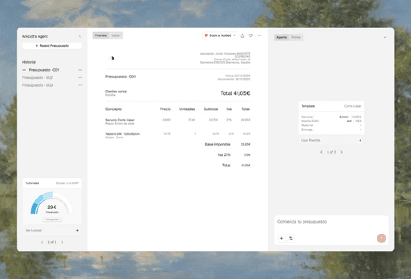 Integra tus herramientas de negocio para la que nuestro agente de IA sea capaz de entender tu historial de presupuestos y tus escandallos de coste para realizar presupuestos precisos.
